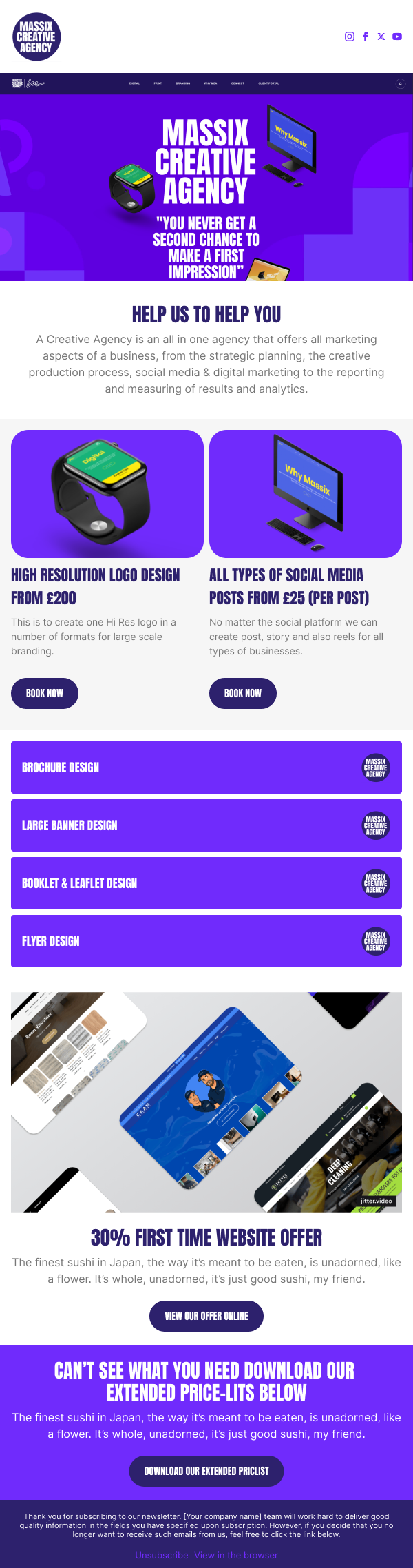 This is for a design and coded mailshot to send out as marketing material to your clients.